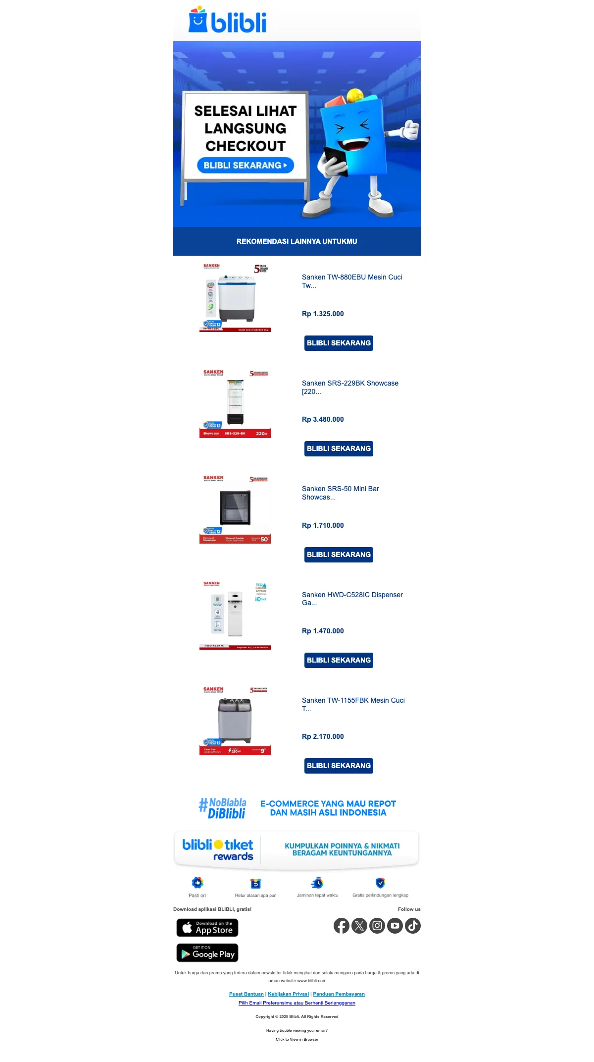 Nah masih mau pindah ke lain hati? Dimana lagi Anda bisa mendapatkan semua kebutuhan tanpa harus membayar mahal, kalau bukan di sinia. Selain itu, bagi Anda yang ingin mendapatkan voucher promo Blibli Indonesia secara eksklusif, Anda cukup mendaftarkan alamat email Anda untuk berlangganan Buletin Saleduck secara gratis dan setiap harinya Anda akan menerima segala informasi dan promo terbaru. So guys, pastikan di hape kamu ada aplikasi nya ya!